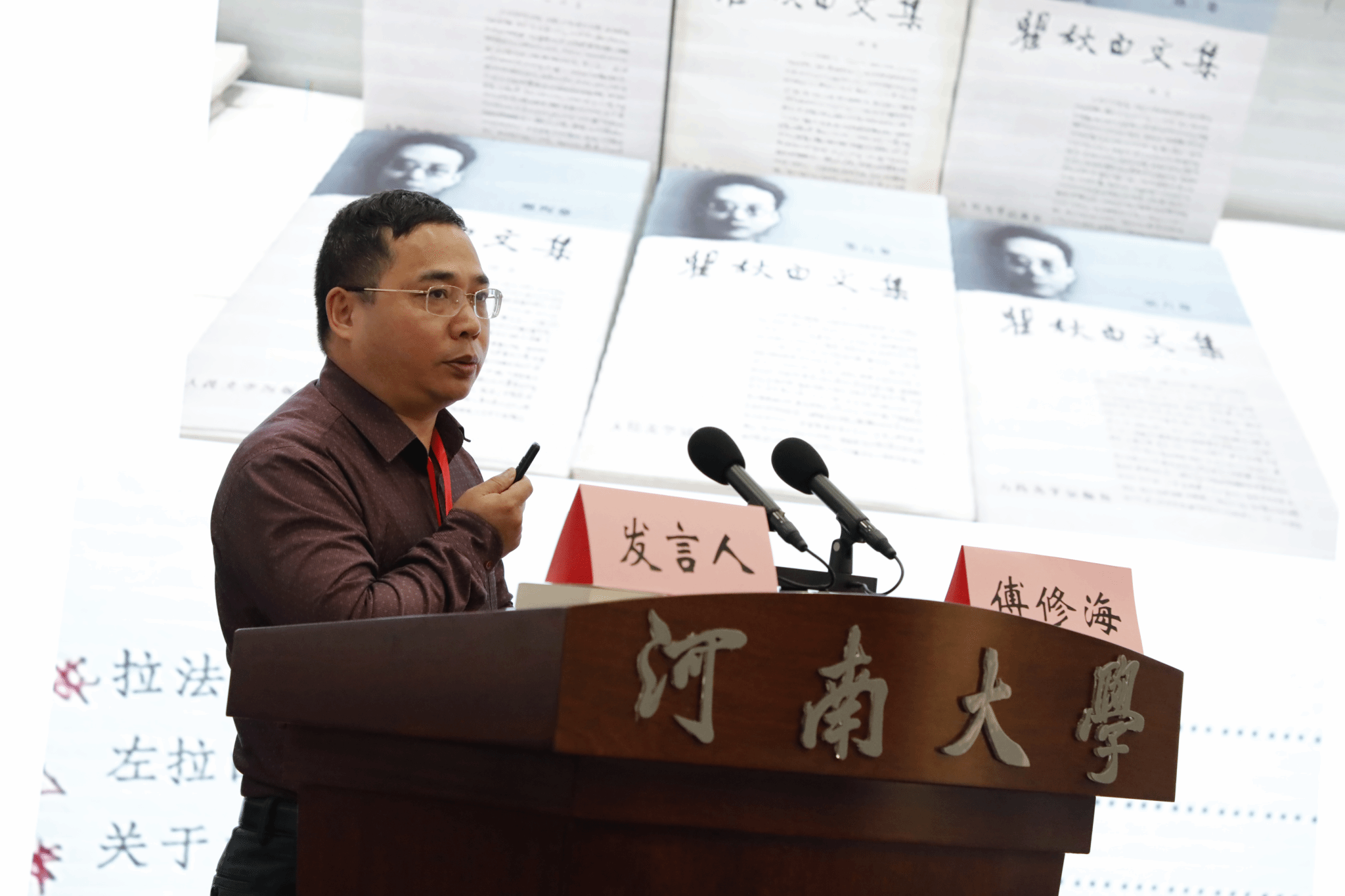 开幕式后,举行大会主题发言第一场,由河南大学张清民教授主持,北京第二外国语学院赵京华教授评议。上海交通大学王锡荣教授、浙江大学哲学学院王杰教授、上海鲁迅纪念馆副馆长李浩、福建师范大学傅修海教授围绕主题作主题发言。四位老师分别从历史总体性与个案编译的角度出发分析左联文论和马克思主义中国化的议题,不仅梳理了左联革命理论的建构过程,而且追溯了中国马克思主义美学理论的理论缘起,同时展现了马克思主义文艺理论引进中国时情况的复杂性,也肯定了瞿秋白编译马克思主义文艺论文集的影响,四位老师的发言聚焦左联文艺研究与马克思主义文论发展两大核心方向,研讨过程高效有序。