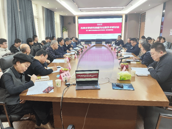 11月24日下午,古典文学研究选题与出版学术研讨会暨新书座谈会在河南大学文学院A209会议室举行。人民文学出版社副总编辑仝冠军、古典文学编辑室主任葛云波、古典小说室主任胡文骏及古典小说编辑室副编审高宏洲、河南大学文学院院长武新军、特聘教授刘跃进、齐文榜教授、杨国安教授、李金松教授等教师代表参会。座谈会围绕双方合作成果、古籍整理出版合作及人才培养等议题展开深入交流。