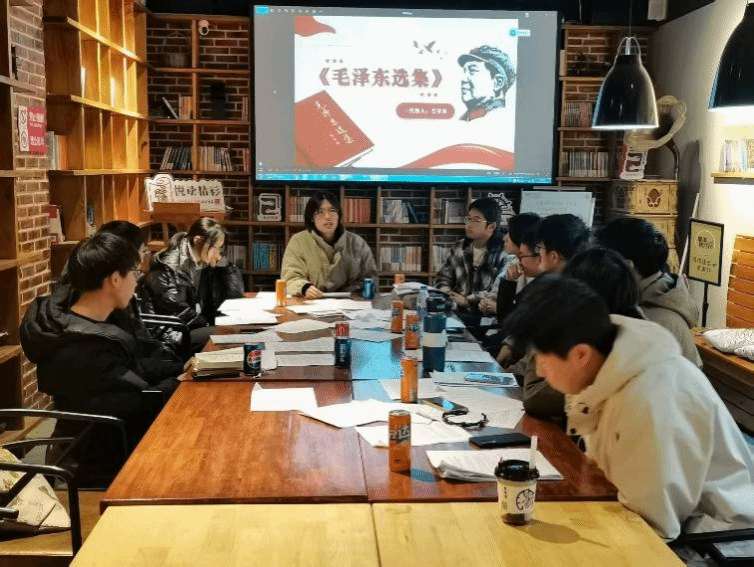 活动伊始,二十余名社团成员沉浸于四十分钟的静心阅读,重点研读了《中国的红色政权为什么能够存在?》《反对自由主义》等五篇经典篇目。随后的研讨环节,同学们将毛泽东著作中的立场、观点、方法与当代青年现实问题紧密结合,展开了多维度、深层次的思想碰撞。交流中,有成员从党史维度出发,剖析党在复杂矛盾中发展壮大的历史逻辑;有成员通过比较中外革命道路,深化对中国道路独特性的理解;更有成员聚焦现实,探讨如何运用矛盾分析法解决学习与生活中的具体难题。多元的视角既拓展了理论认识的广度,也促进了成员间的相互启迪。