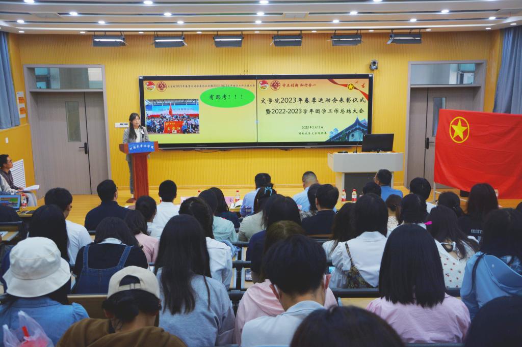 5月13日下午,文学院召开2023年春季运动会表彰仪式暨2022-2023学年团学工作总结大会。学院领导班子,师生代表,团委、学生会、青协、通讯社全体成员,春季运动会表彰学生代表参加会议。本次会议由文学院团委副书记王剑福主持。