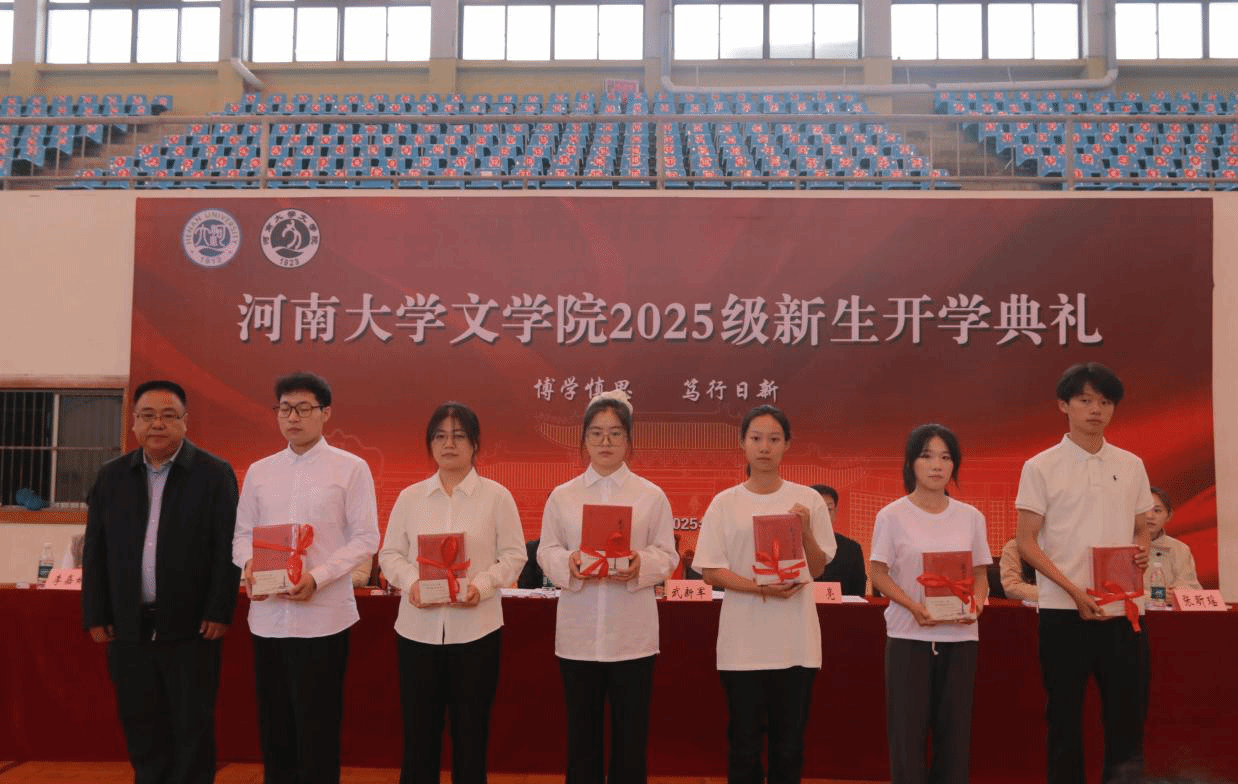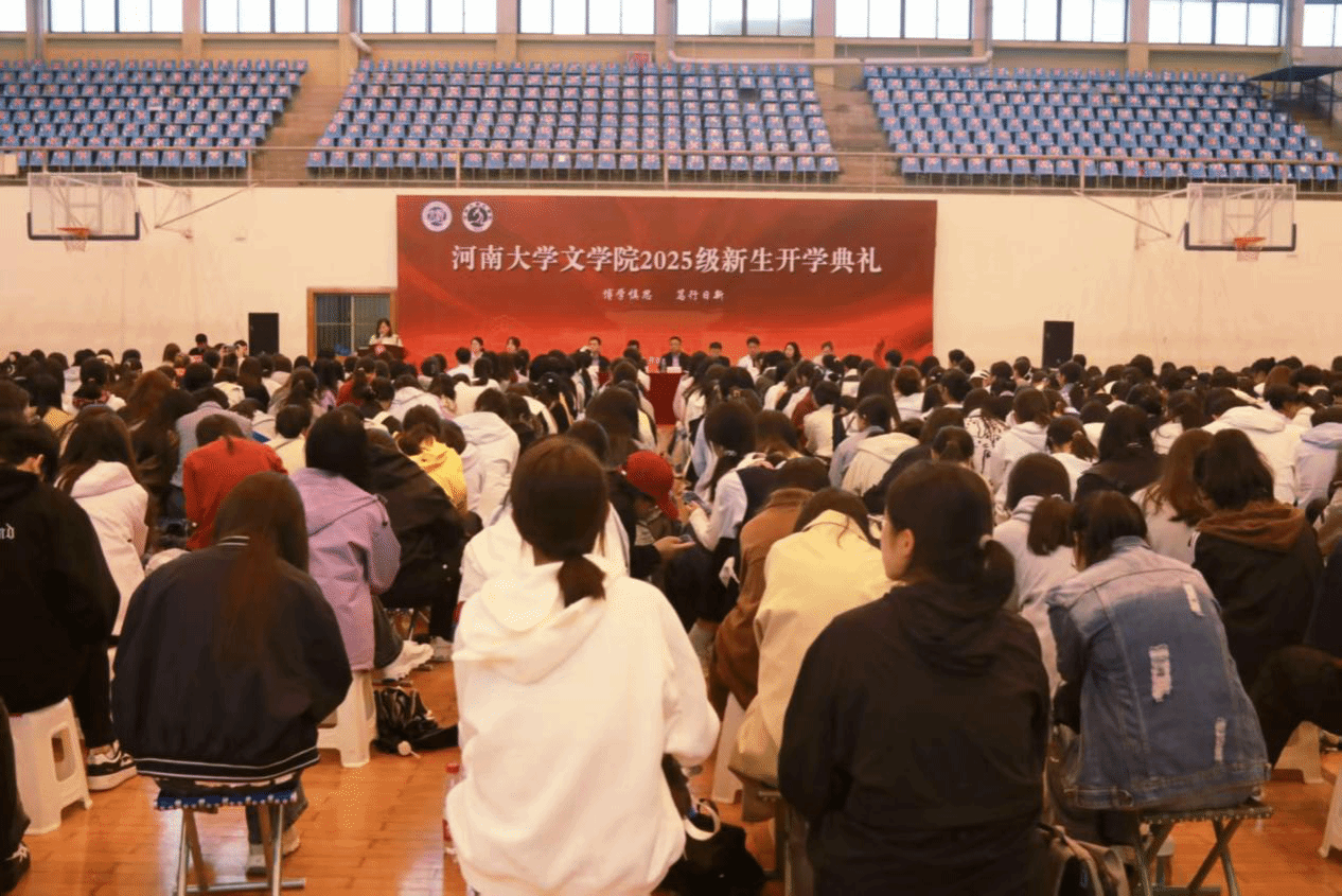 秋雨润泽迎新知,青春汇聚启新程。9月28日上午,文学院2025级新生开学典礼于河南大学体育馆举办。文学院党委书记刘百陆,院长武新军,副院长杨波,院长助理杨亮,教师代表鲁冰,党办负责人、2024级和2025级本科生辅导员袁丛政,2023级本科生辅导员胡秋平,2025级研究生辅导员关昊,2025级本科生辅导员助理张昕瑶出席,文学院2025级全体本科生、研究生、预科生参加典礼。本次典礼由院长助理李嘉妍主持。