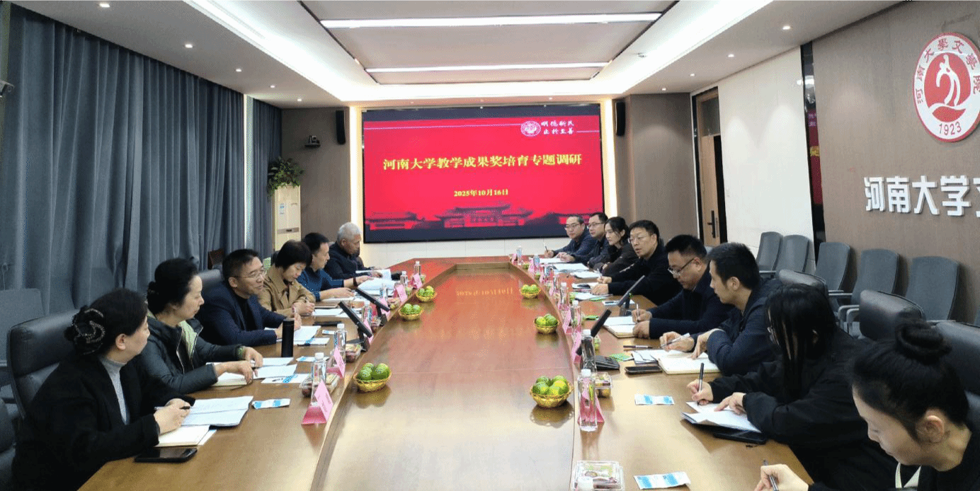 10月16日上午,河南大学教务处围绕教学成果奖培育工作,在文学院209会议室召开专题调研会。教务处处长何欣、课程中心副主任任凤竹、教育学部教授李桂荣和教务处相关科室工作人员,文学院院长武新军及项目参与人员,就教学成果培育关键问题深入研讨。
