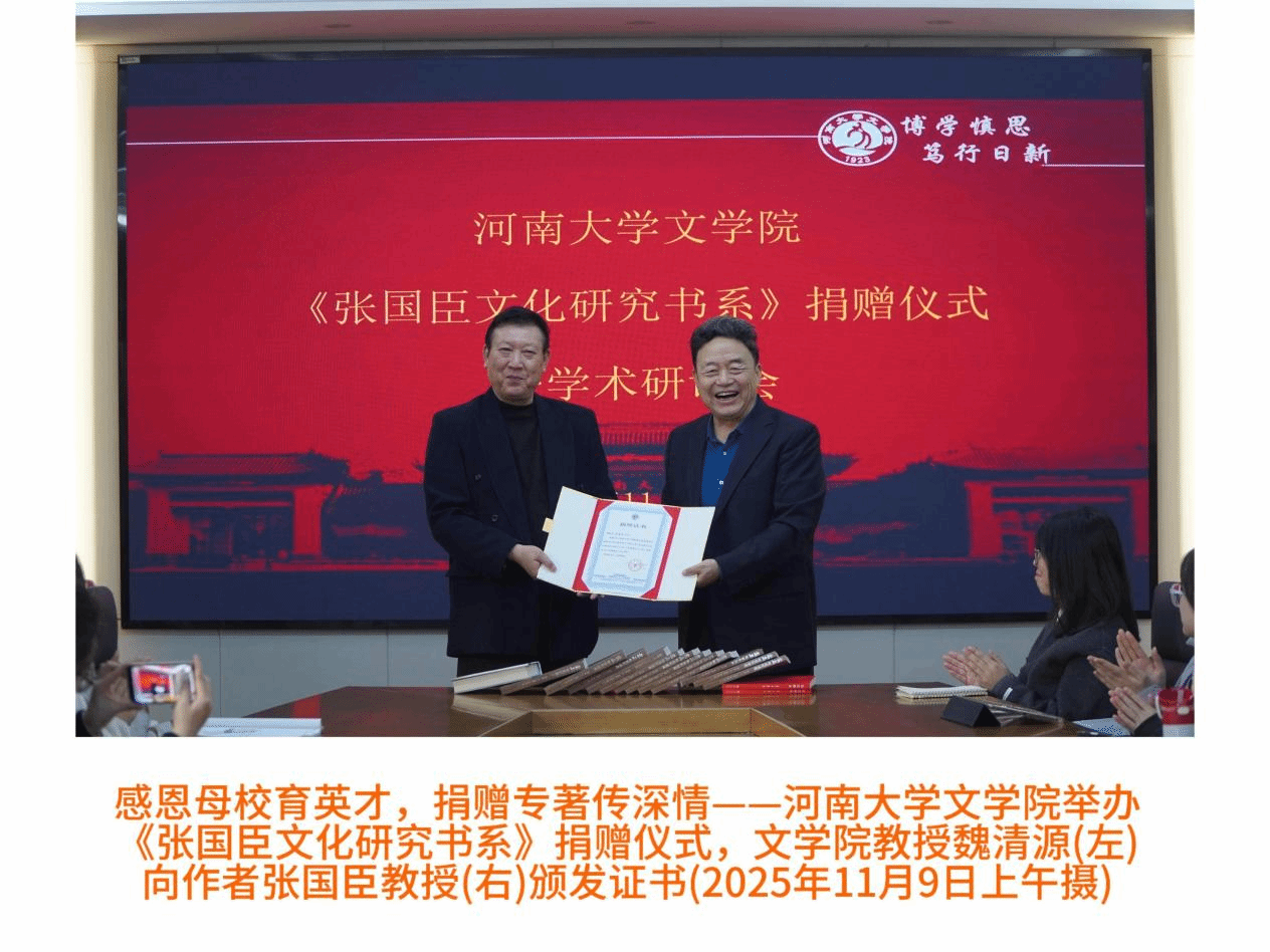 ——河南大学文学院举办《张国臣文化研究书系》捐赠仪式暨学术研讨会