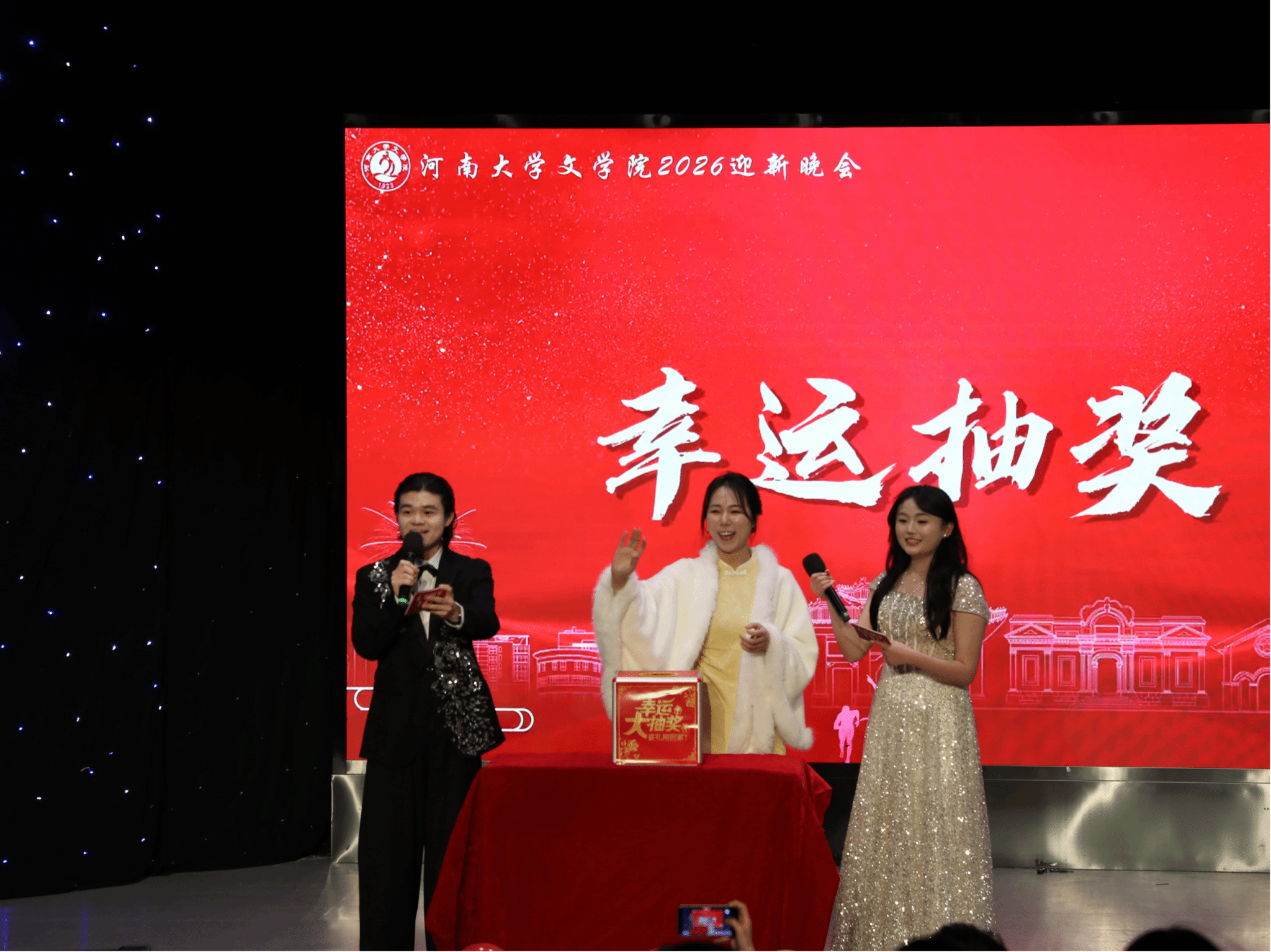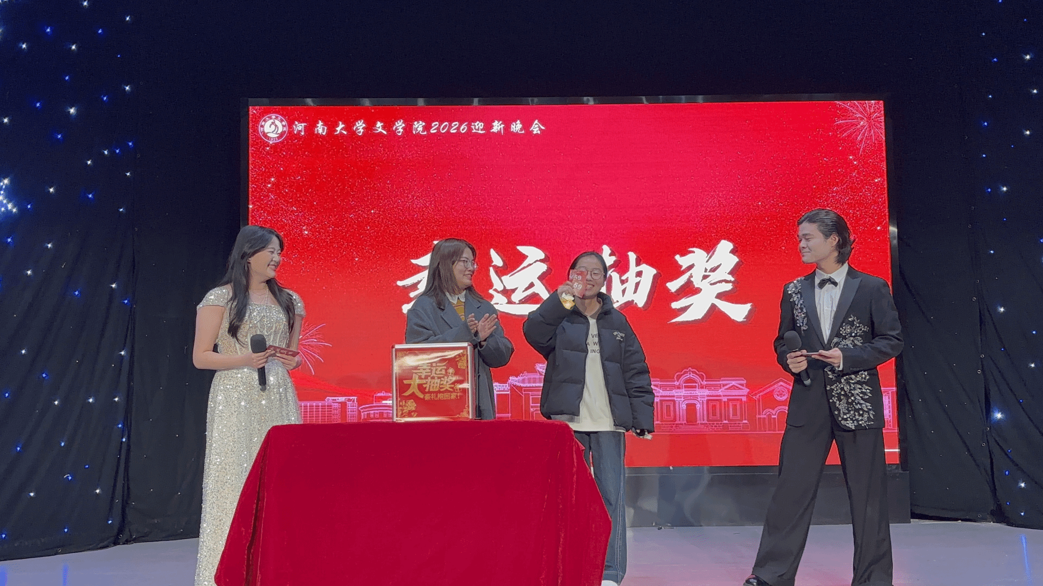晚会抽奖环节,现场气氛高涨,观众们紧张地期待着手中的号码为自己带来好运。随着李嘉妍、袁丛政、胡秋平老师上台揭晓一等奖、二等奖、三等奖的幸运号码,观众们齐声喝彩,为这些幸运儿们送上祝福,掌声和欢呼声不绝于耳。