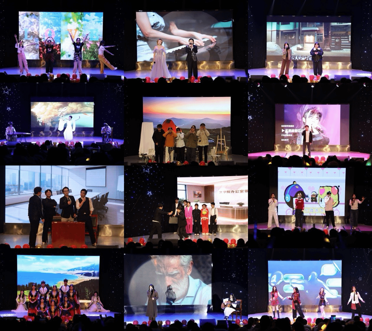 伴随民族舞《舞动疆来》的最后一个舞步落下,晚会圆满落幕。本次晚会以多样的节目形式展现了文学院学子的青春风采与艺术才情,生动诠释了“文笺赋岁,青春长歌”的主题内涵,激励着同学们以更饱满的热情迎接新一年的成长与挑战。未来,文学院学子将继续以笔墨抒怀、以青春放歌,在文学之路上步履不停;文学院也将秉持“博学慎思,笃行日新”的院训,为学子搭建更多展示自我、发展成长的平台,携手书写文学院青春昂扬的崭新篇章。