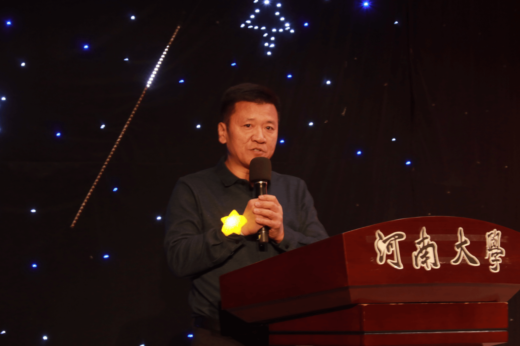 晚会伊始,文学院党委书记刘百陆致开幕词。他首先对2025级新生表示热烈欢迎,在总结过去一年文学院在学术科研、教学工作、学生发展等方面成果的同时,重点表达了对文学院教学班子的感谢。他展望了文学院2026年的发展,勉励同学们厚植家国情怀、努力学习,并预祝晚会圆满成功。