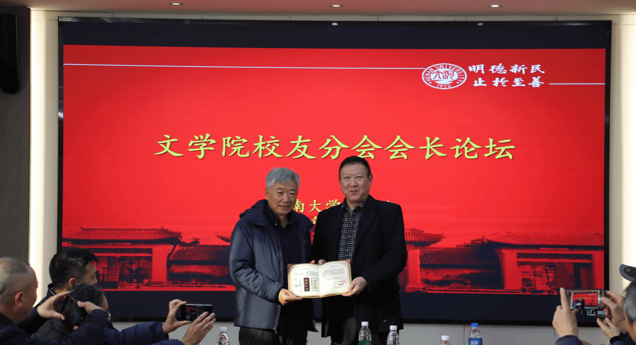 1974级校友、商丘校友会代表秦崇海对河南大学当前的跨越式发展深感欣慰,明确表示将全力调动个人资源支持文学院在学科建设、学术研究、师资培养等方面的发展,积极配合学校的整体发展战略和各项工作安排,为文学院及母校的发展贡献个人力量。