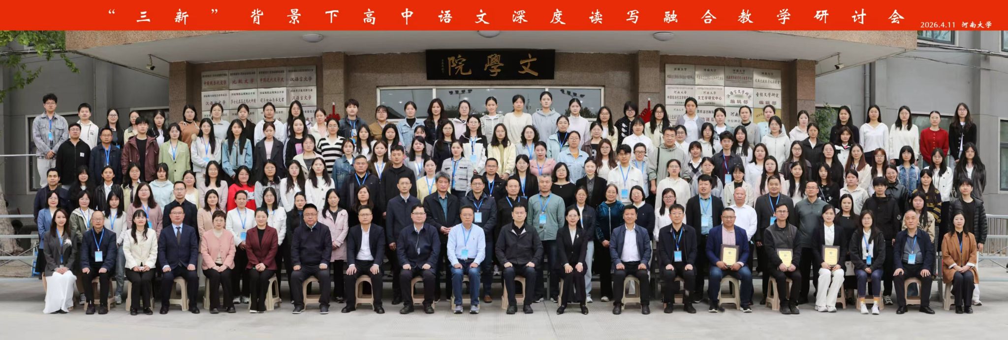 2026年4月11日,以“深度读写融合共生”为主题的“三新”背景下全国高中语文深度读写融合教学研讨会在河南大学文学院圆满落幕。本次研讨会由河南大学文学院主办,河南省实验中学、郑州市第一〇一中学承办。吸引了全省三十余所优质高中、省级名师工作室的数百名骨干教师、教研专家以及河南大学文学院师生齐聚一堂,共研教学改革,共话育人新径。